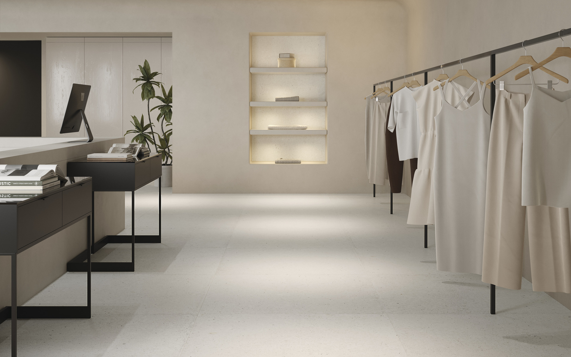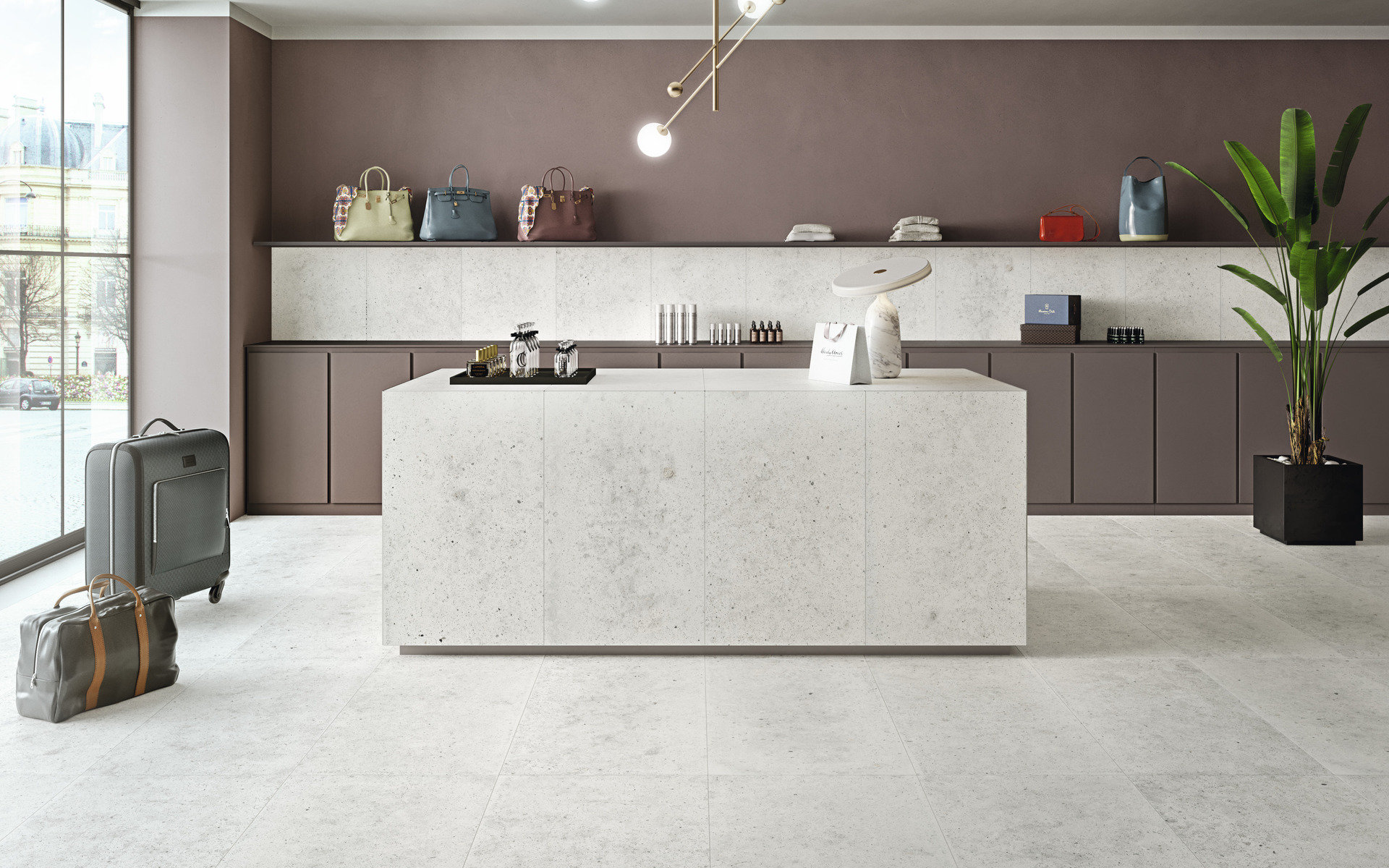 Die technische Leistungsfähigkeit des keramischen Steinzeugs von Iris Ceramica für Böden und Beschichtungen sowie die Vielfalt der verfügbaren Muster und Kombinationen sorgen für ein Höchstmaß an praktischem Komfort und setzen stimmungsvolle Trenddesigns.