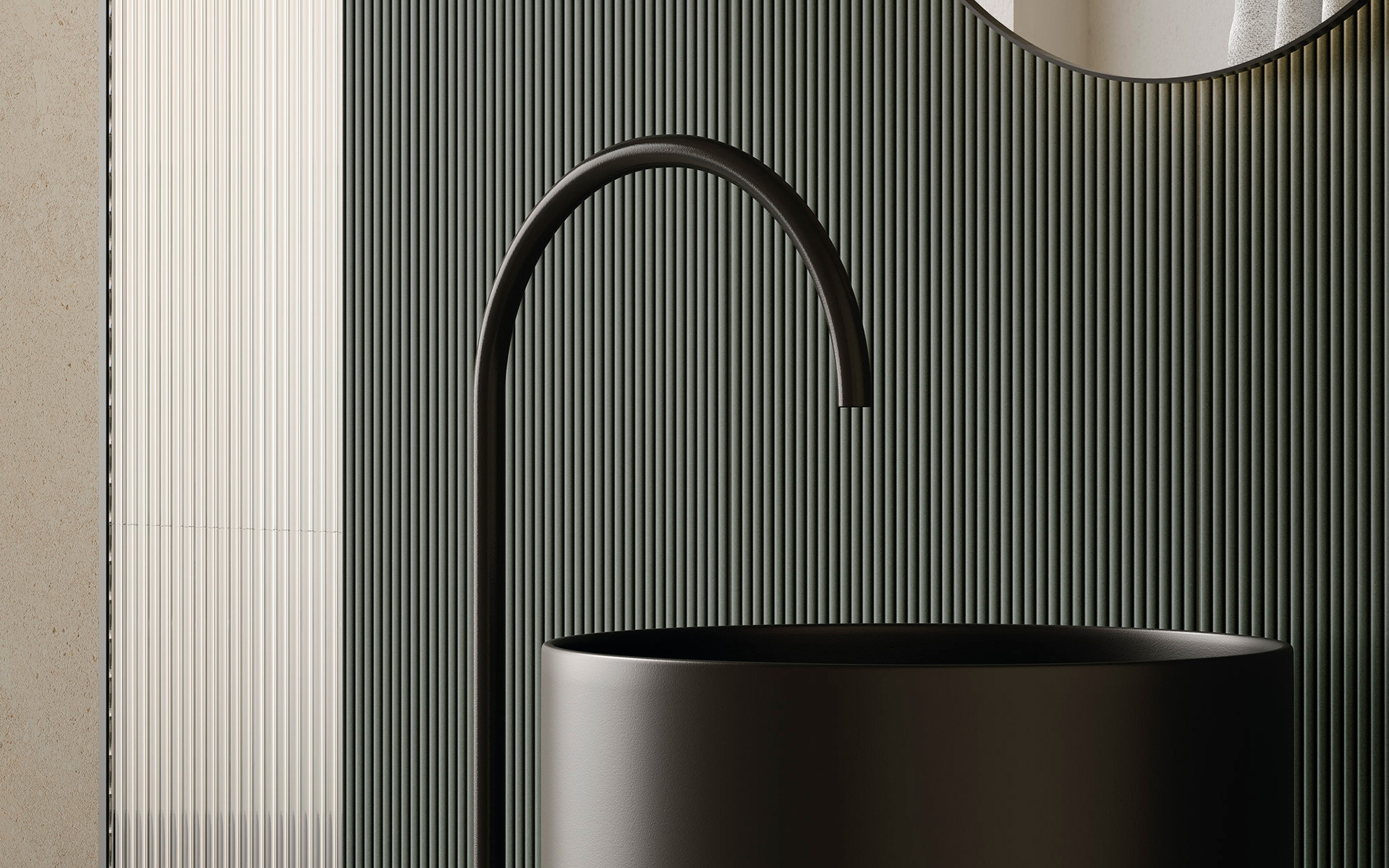 Eine Gesteinsart englischen Ursprungs mit edlem Charakter erwacht in einem Projekt zu neuem Leben, das dank der Fusion von ästhetischer Forschung und Technologie ihre Qualitäten mit einem originellen zeitgenössischen Akzent aufwertet.