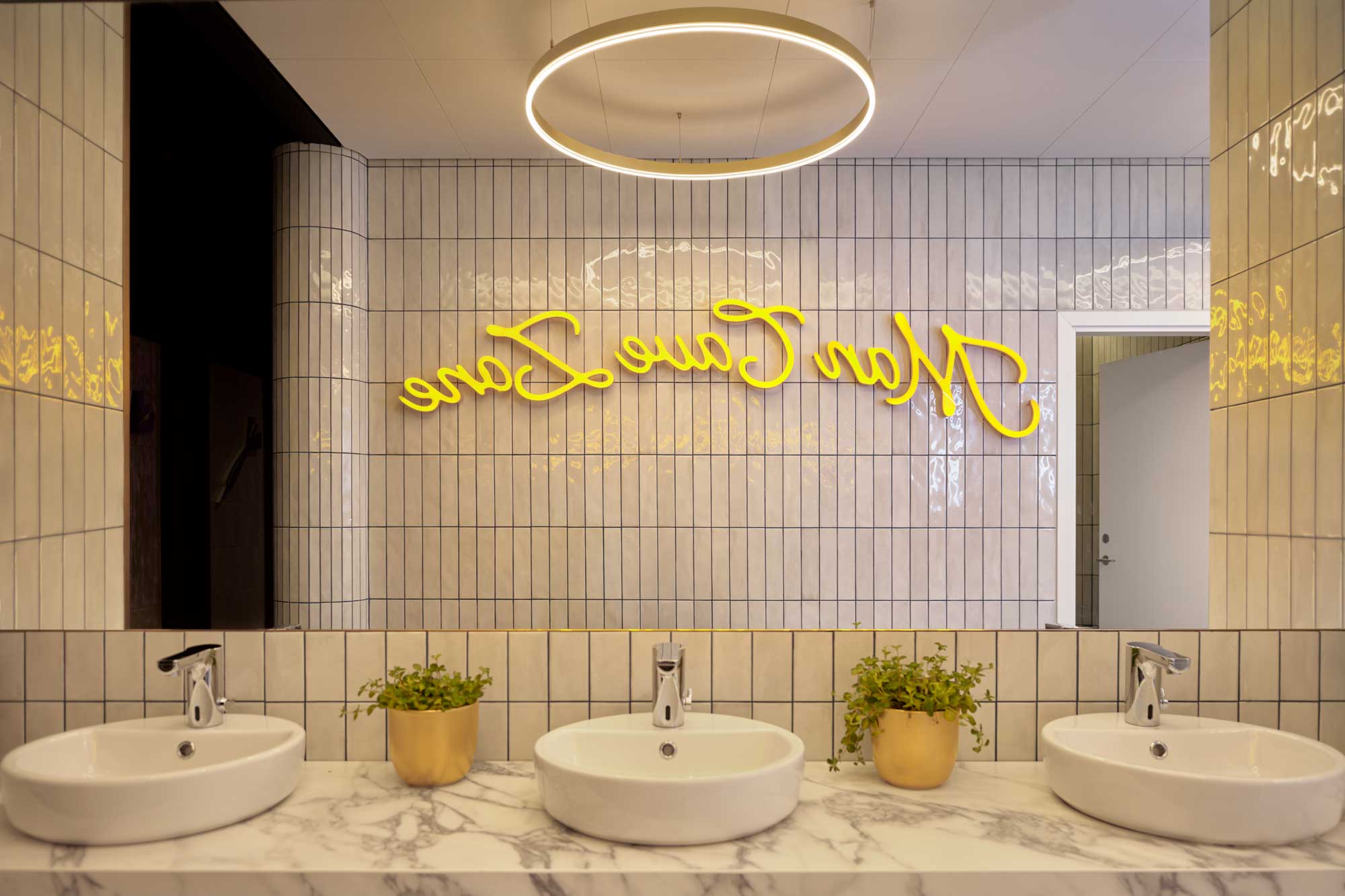 Die renovierte Oche®, ein sozialer Spiel- und Gastronomiebereich, überrascht mit einem Design, das Funktionalität und Kreativität vereint. Die Fußböden aus Elementi Pietra di Sciara und die Wände aus Elementi Rivestimenti ergänzen die starke und ungewöhnliche Kombination von Farben, raffinierten Details und der Präsenz von Pflanzen und Blumen. Diese Umgebungen bieten eine einzigartige Erfahrung und erzeugen einen „Wow-Effekt“, der die Besucher dazu einlädt, Selfies zu machen, um sie in den sozialen Medien zu teilen, was den Instagram-Charakter des Raums unterstreicht.