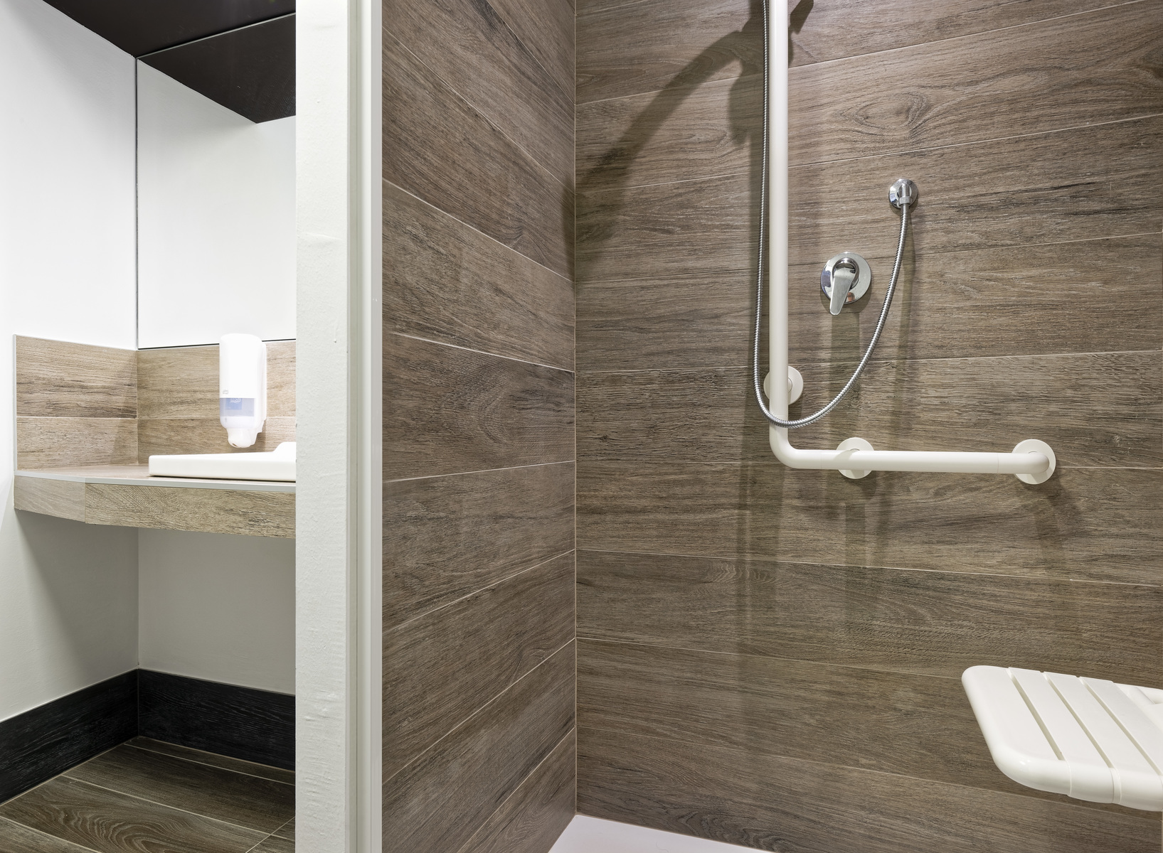 Bei der Innenmodernisierung des Krankenhauses Bufalini in Cesena zeichnete Iris Ceramica für Boden- und Wandoberflächen in vier Normalstationen verantwortlich. Das von Architekt Andrea Gozzoli (U.O. Progettazione e Sviluppo Edilizio – AUSL della Romagna) geleitete Projekt stellte Patientenkomfort, wahrgenommene Raumqualität sowie Hygiene und Sicherheit in den Mittelpunkt. Der 1962 errichtete Komplex erforderte eine umfassende Sanierung: freundlichere Zimmer (Hotelstandard mit zwei Betten und barrierefreiem Bad) sowie hochwertige Oberflächen mit Robustheit, Hygiene und Wohlbefinden, die Orientierung und Ruhe während des Aufenthalts unterstützen. Zum Einsatz kamen ACTIVE-Technologie-Oberflächen von Iris Ceramica: photokatalytische Keramik (aktivierbar durch Tages- oder Kunstlicht), die zur Reduktion der bakteriellen Belastung, zur Verringerung von Innenraumschadstoffen (z. B. NOx und VOC) und zur vereinfachten Reinigung dank Self-Cleaning beitragen. Der Einsatz von ACTIVE ermöglicht einen geringeren Bedarf an aggressiven Reinigern, unterstützt nachhaltigere Hygienekonzepte und senkt die Betriebskosten über den Lebenszyklus. Die sorgfältige Abstimmung von Materialität, Licht und einem polychromen Verlegebild für Böden und Wände verbessert die Wahrnehmung von Zimmern und Fluren und schafft gut lesbare, einladende Räume. Das Projekt bekräftigt das Engagement von Iris Ceramica, Design, Leistungsfähigkeit und ökologische Nachhaltigkeit in sensiblen Gesundheitsbereichen zu vereinen.